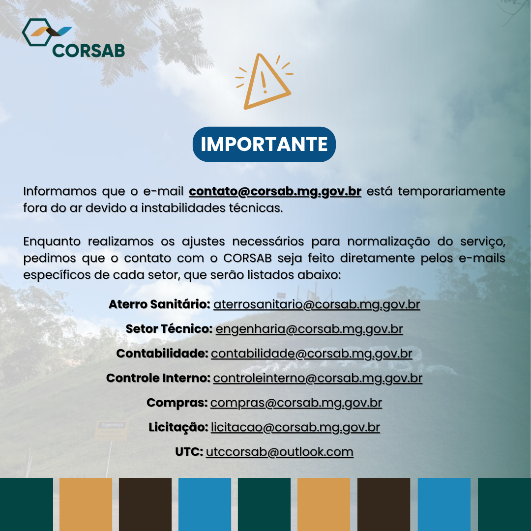 O Consórcio Regional de Saneamento Básico - CORSAB, através de sua Secretaria Executiva, órgão que coordena a política administrativa interna do consórcio, torna pública a abertura do Processo Seletivo Simplificado, para vaga de contratação de profissional Técnico em Meio Ambiente, cujas regras estão definidas neste Edital.